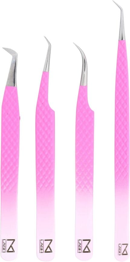 M LASH Tweezers for Eyelash Extensions (Set of 4) – Professional Lash Extension Tweezers – Fiber Tip, Japanese Steel, Diamond Grip Eyelash Extension Tweezer (PW-Ombre)